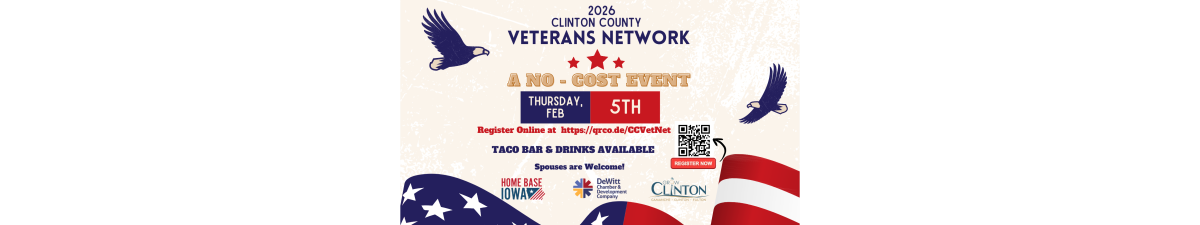 Clinton County Veterans Network is brought to you by Home Base Iowa, DeWitt Chamber & Development Company, and Grow Clinton